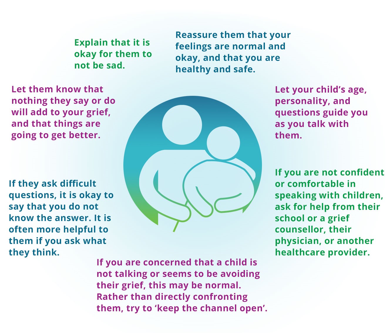 I know my children are grieving too. It’s sometimes hard to have the right words, but I let them know that they can come and speak with me whenever they want or need to. I do my best to answer their questions and to listen even though I’m grieving too.